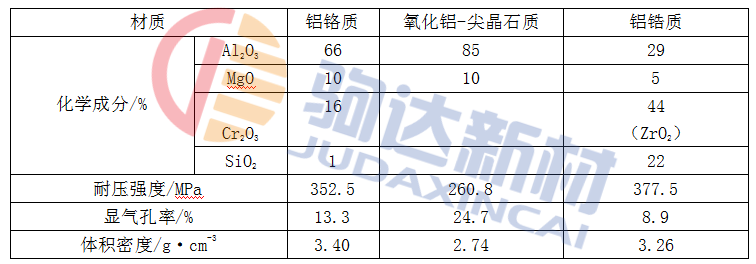 火焰噴補料用的耐火粉料,其品種有鎂砂、鎂白云石砂和鎂鉻砂等,細度為小于0.1mm,其中0.09mm的占60%以上;增塑燒結(jié)劑有軟質(zhì)黏土、膨潤土和硅灰等;助燃劑可選用焦末、煤粉和鋁粉等。火焰噴補料的通用配合比:耐火粉料65%~80%、助燃劑3%~20%、燒結(jié)劑等外加物5%~10%。最近,在噴補料中又摻加石灰等造渣材料,使火焰噴補層成為耐火渣層,即爐襯掛渣,保護原襯磚層,其效果顯著,成本低廉,正在推廣。表1-1為火焰噴補料性能。
