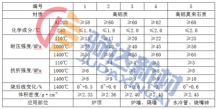 從表1-1中看出,澆注料的Al2O3含量約為60%、足以滿足加熱爐工作的需要。因為Al2O3高,澆注料的抗熱震性不好,易產生剝落;澆注料的強度比黏土結合耐火澆注料高,又大大低于低水泥耐火澆注料。因為強度高,易炸裂和剝落,不利于加熱爐的使用;澆注料1400℃燒后線變化均為正值,在使用中有微膨脹,能防止爐襯裂紋的產生和減少熱剝落。對于內腔蓄熱式加熱爐來說,尤為重要。有腔式爐墻,較小產生裂紋或開裂,能防止煤氣和空氣見的竄通,避免事故的發生。