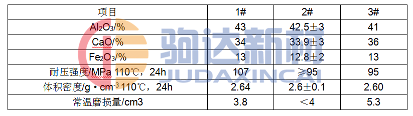 循環(huán)流化床發(fā)電鍋爐施工體極復(fù)雜,施工量大,系統(tǒng)管道內(nèi)煤粉流速高,流量大,要求內(nèi)襯用耐火材料強(qiáng)度高,耐磨性好,并且具有優(yōu)良的施工性。本文根據(jù)使用條件,從原料制備、結(jié)合劑選擇及影響常溫磨損量的因素等方面進(jìn)行研究,生產(chǎn)出高強(qiáng)超耐磨的Al2O3—CaO—Fe2O3澆注料。