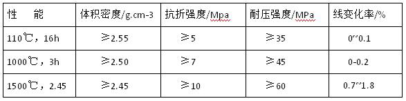 根據以上的檢測結果分析得出沾渣原因主要是因為耐火材料中的AL2O3、Fe2O3、SiO2與渣中的AL2O3、CaO、SiO2等成分發生反應生成一些低熔點的特質黏附在耐火材料的表面,通過調整耐火材料的組成和降低耐火材料的氣孔率可減少沾渣。另一方面可以從減少鐵水包的溫降著手。為此在實驗室選用河南當地的二級礬土熟料做骨料,加入部分Sic及2%左右的Cr2O3進行反復試驗。研制的耐火澆注料的化學組成(%):AL2O3≥65,SiO2≥25, SiC ≥9,Cr2O3≤2,CaO ≤1,物理性能見表3.